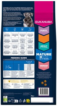 Složení: | Sušené kuřecí a krůtí (28 % včetně kuřecí 20 %, přirozený zdroj glukosaminu, chondroitinu a taurinu), čerstvé kuřecí (16 %), ječmen, kukuřice, pšenice, drůbeží tuk, oves, čirok, sušená řepná dužina (3,5 %), kuřecí šťáva, minerální látky (včetně hexametafosforečnanu sodného 0,34 %), fruktooligosacharidy (0,38 %, přírodní prebiotikum), sušená celá vejce, glukosamin (z živočišné tkáně) (0,04 %). |