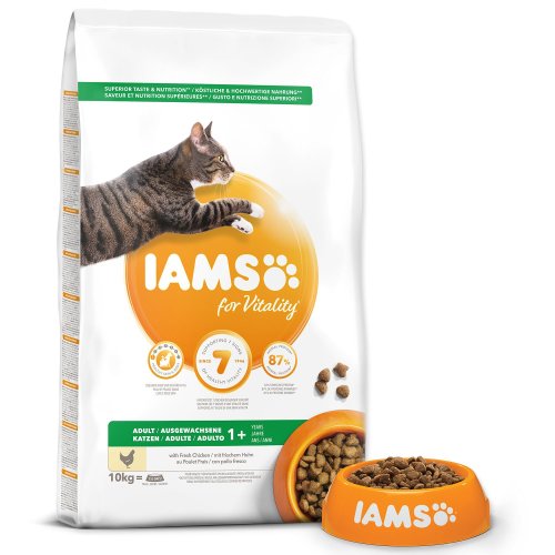 Krmivo IAMS for Vitality pro dospělé kočky je 100% kompletní a vyvážené, odborníky sestavené krmivo, které bude vašemu zvířeti chutnat a svědčit. Naše nová a vylepšená receptura pro dospělé kočky s čerstvým kuřecím masem je založena na kvalitních živočišných bílkovinách pečlivě vybraných tak, aby podporovaly sedm znaků zdravé vitality kočky. Aby byly kočky zdravé, aktivní a plné energie, obsahují naše lahodné receptury až 87 % živočišných bílkovin (z celkového obsahu bílkovin).