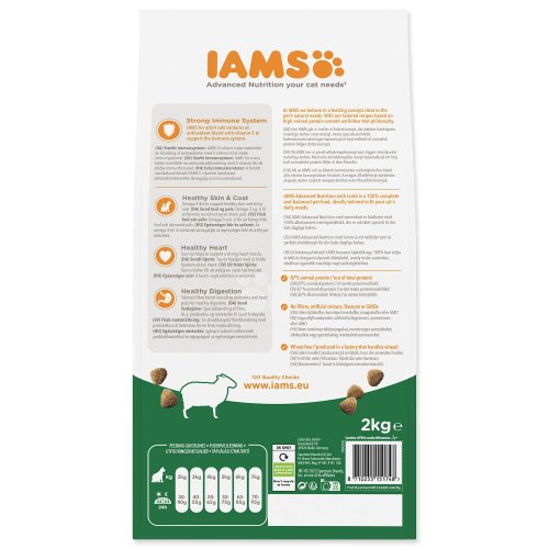 Krmivo IAMS for Vitality pro dospělé kočky je 100% kompletní a vyvážené, odborníky sestavené krmivo, které bude vašemu zvířeti chutnat a svědčit. Naše nová a vylepšená receptura pro dospělé kočky s jehněčím masem je založena na kvalitních živočišných bílkovinách pečlivě vybraných tak, aby podporovaly sedm znaků zdravé vitality kočky. Aby byly kočky zdravé, aktivní a plné energie, obsahují naše lahodné receptury až 87 % živočišných bílkovin (z celkového obsahu bílkovin).