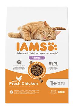 Naším závazkem je nabídnout kočkám specializované krmivo se skvělou chutí, které si váš domácí mazlíček bezvýhradně zamiluje a které bude podporovat všech sedm znaků zdravé vitality. Oproti našemu běžnému krmivu IAMS pro dospělé kočky s čerstvým kuřecím masem pomáhá tato receptura snižovat tvorbu chlupových bezoárů až dvakrát efektivněji.