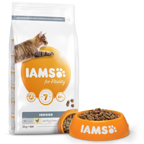 Krmivo IAMS for Vitality pro dospělé kočky a kočičí seniory žijící v bytě je 100% kompletní a vyvážené, odborníky sestavené krmivo, které bude vašemu zvířeti chutnat a svědčit. Naše nová a vylepšená receptura s čerstvým kuřecím masem je založena na kvalitních živočišných bílkovinách pečlivě vybraných tak, aby podporovaly sedm znaků zdravé vitality kočky. Aby byly kočky zdravé, aktivní a plné energie, obsahují naše lahodné receptury až 89 % živočišných bílkovin (z celkového obsahu bílkovin). Naše receptura pro kočky chované v bytě dokonale přispívá k zachování štíhlé a zdravé tělesné stavby.