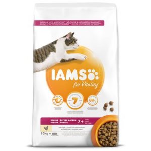 Krmivo IAMS for Vitality pro kočičí seniory je 100% kompletní a vyvážené, odborníky sestavené krmivo, které bude vašemu zvířeti chutnat a svědčit. Naše nová a vylepšená receptura pro kočičí seniory s čerstvým kuřecím masem je založena na kvalitních živočišných bílkovinách pečlivě vybraných tak, aby podporovaly sedm znaků zdravé vitality kočky. Aby byly kočky zdravé, aktivní a plné energie, obsahují naše lahodné receptury až 88 % kuřecího masa (z celkového obsahu bílkovin).