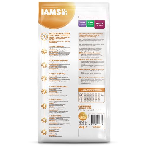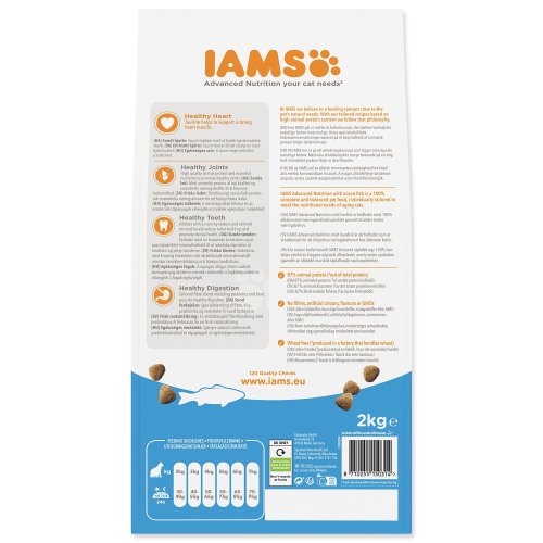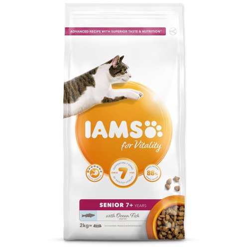 Krmivo IAMS for Vitality pro kočičí seniory je 100% kompletní a vyvážené, odborníky sestavené krmivo, které bude vašemu zvířeti chutnat a svědčit. Naše nová a vylepšená receptura pro kočičí seniory s mořskými rybami je založena na kvalitních živočišných bílkovinách pečlivě vybraných tak, aby podporovaly sedm znaků zdravé vitality kočky. Aby byly kočky zdravé, aktivní a plné energie, obsahují naše lahodné receptury až 88 % živočišných bílkovin (z celkového obsahu bílkovin).