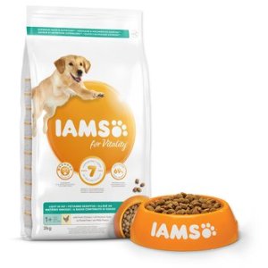 Naším závazkem je dopřát psům specializované krmivo se skvělou chutí, které si váš domácí mazlíček bezvýhradně zamiluje a které bude podporovat všech sedm znaků zdravé vitality. Oproti krmivu IAMS pro dospělé psy s čerstvým kuřecím masem obsahuje tato receptura o 30 % méně tuku než naše běžná receptura pro dospělé psy, takže přispívá k udržení zdravé tělesné hmotnosti. Křupavé granule a optimální hladina minerálů pečuje o zdraví psích zubů a snižuje vznik zubního kamene.