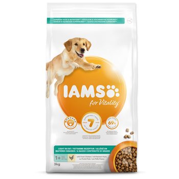 Krmivo IAMS for Vitality s nízkým obsahem tuku pro dospělé psy a psí seniory všech plemen je 100% kompletní a vyvážené, odborníky sestavené krmivo, které bude vašemu zvířeti chutnat a svědčit. Naše nová a vylepšená receptura s čerstvým kuřecím masem je založena na pečlivě vybraných, kvalitních živočišných bílkovinách, které podporují sedm znaků zdravé vitality psa. Aby byl váš pes zdravý, aktivní a plný energie, obsahují naše lahodné receptury až 69 % živočišných bílkovin (z celkového obsahu bílkovin). Naše receptura s nízkým obsahem tuku a pro kastrovaná zvířata skvěle pomáhá regulovat hmotnost psa.