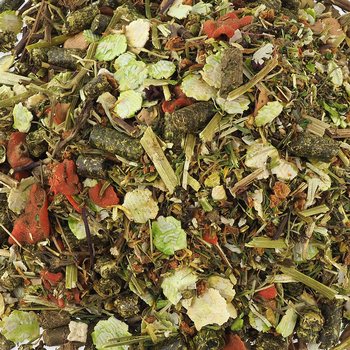 Složení: sušená vegetace rostoucí na trvalých pastvinách podhůří Alp, hrachové vločky 11,4 %, zelenina (sušená mrkev, sušená petržel 2,1 %, sušený pastinák, sušená červená řepa), byliny (sušené květy měsíčku lékařského 2 %, sušené kopřivy, sušená máta peprná 1,1 %, sušená meduňka, sušené pampelišky, sušený heřmánek), sušená jablka 4 %, vločky z bobu obecného 3,3 %, sušená vojtěška, lněná semena, semena černého kmínu, semena fenyklu.