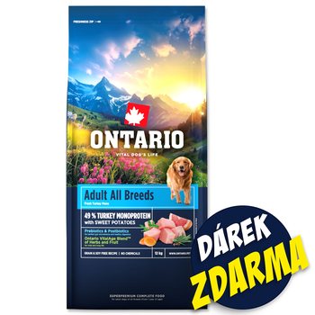 Krmivo Ontario Adult All Breeds Monoprotein Turkey & Sweet Potatoes 2x12kg+Barel ZDARMA