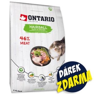 Krmivo Ontario Cat Hairball 6,5kg + 6 kapsiček ZDARMA