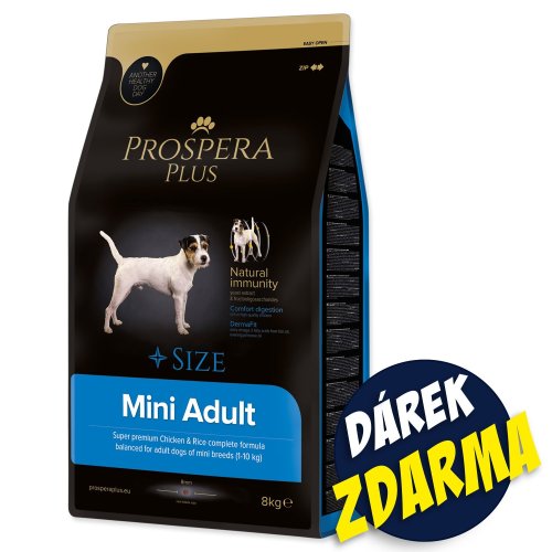 Superprémiové kompletní krmivo kuřecí s rýží pro dospělé psy ve věku 1-7 let, malých a trpasličích plemen (1-10 kg). Lepší trávení Krmivo PROSPERA PLUS Mini Adult je bohaté na obsah kuřecí masa, které psi velmi snadno stráví. Posílení imunity Výtažek z kvasnic a fruktooligosacharidy posílí imunitu psa. Bude tak lépe odolávat všem onemocněním. Veterináře tak můžete navštěvovat jen při pravidelných prohlídkách. Zdravá srst a kůže Aby se srst krásně leskla a nevypadávala, obsahuje krmivo PROSPERA PLUS extra omega-3 mastné kyseliny z rybího tuku a také pupalkový olej. Náš závazek Dodávat kvalitní výživu pro každý den je náš závazek vůči Vašim mazlíčkům. Krmivo PROSPERA PLUS neobsahuje látky ani suroviny nevhodné pro zdraví a kondici. Optimální velikost každé granule Velikost všech granulí je přizpůsobena potřebám každého psa. Pokud sáhnete po správném krmivu, nemusíte se bát, že by pro něj granule byly moc velké nebo naopak malé. PROSPERA PLUS Mini Adult je superprémiové krmivo bohaté na vysoce kvalitní kuřecí maso, které zaručuje lepší trávení dospělých psů malých plemen. Ingredience obsažené v receptuře, fruktooligosacharidy a extrakt z kvasnic posilují imunitu Vašeho psa. Přírodní Omega 3 mastné kyseliny z rybího tuku společně s pupalkovým olejem přispívají ke krásné srsti a zdravé kůži. SLOŽENÍ: kuře 30% (sušené kuřecí 30 %, sušená kuřecí bílkovina 5 %), rýže, kukuřice, kuřecí tuk 9 %, kvasnice, řepné řízky, rybí tuk 1 % (zdroj omega-3 mastných kyselin), minerály, pupalkový olej 0,1 %, fruktooligosacharidy (100 mg/kg), kvasničný extrakt (zdroj mannan-oligosacharidů 90 mg/kg), výtažek z rozmarýnu (50 mg/kg). ANALYTICKÉ SLOŽKY: hrubý protein 28,0 %, obsah tuku 18,0 %, vlhkost 10,0 %, hrubý popel 7,8 %, hrubá vláknina 2,6 %, vápník 1,7 %, fosfor 1,3 %, sodík 0,2 %, hořčík 0,09 %. NUTRIČNÍ DOPLŇKOVÉ LÁTKY NA 1 kg: vitamín A (3a672a) 14 000 IU, vitamín D3 (E671) 1 200 IU, vitamín E (alfa-tokoferol) (3a700) 300 mg, vitamín B1 (3a821) 1 mg, vitamínB2 6 mg, vitamín B6 (3a831) 1 mg, vitamín B12 0,04 mg, zinek (E6) 80 mg, železo (E1) 60 mg, mangan (E5) 35 mg, jód (3b201) 0,5 mg, měď (E4) 12 mg, selen (3b8.10) 0,2 mg. Obsahuje antioxidanty schválené EU. METABOLIZOVATELNÁ ENERGIE: 3 880 kcal/kg, Omega-3: 0,28 %, Omega-6 2,55 %. O značce PROSPERA PLUS Z čeho se PROSPERA PLUS skládá? Min. 40 % kuřecích nebo jehněčích proteinů a tuků pro výživu svalů a doplnění energie Rýže, řepná vláknina a kukuřice jako zdroje sacharidů pro celodenní výkon Rybí a lněný olej pro doplnění obsahu omega-3 a omega-6 nenasycených mastných kyselin pro zdravou, hustou a lesklou srst Vitamíny, minerály, stopové prvky a přírodní antioxidanty Bylinné a ovocné extrakty jako přirozené biologické zdroje látek pro podporu zdraví a imunity Kvalitní výživa, navržená s ohledem na unikátní výživové potřeby našich mazlíčků dle věku, velikosti a aktuální kondice. PROSPERA PLUS Superpremium. Stačí si jen vybrat.