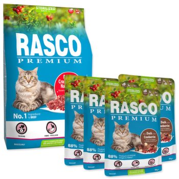 Krmivo Rasco Premium Sterilized hovězí s brusinkou a lichořeřišnicí 2kg+Krmivo 0,4kg ZDARMA