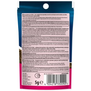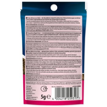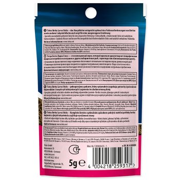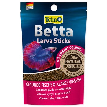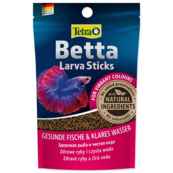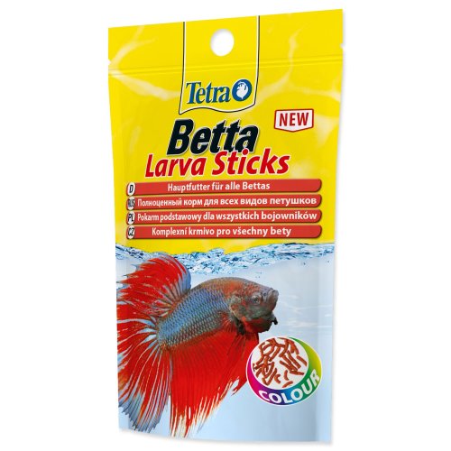 Nové krmivo Tetra Betta Larva Sticks nabízí druhově odpovídající krmivo, které ideálním způsobem pokrývá nutriční potřeby tropických ryb rodu betta a jiných labyrintek. Toto speciální krmivo připomíná svou velikostí, tvarem a barvou komáří larvy, jednu z nejoblíbenějších rybích pochoutek. Toto nové speciální krmivo je ideální k vytvoření přirozených podmínek rybám v akváriu: krmivo plave na hladině vody. Osahuje velice chutné krevetky a vysoký obsah karotenoidů, čímž posiluje zářivé zbarvení ryb. Vysoce kvalitní bílkoviny a omega-3 mastné kyseliny poskytují dostatečnou energii pro zajištění zdravého růstu. BioActive formule pomáhá udržovat rybám zdravý imunitní systém a zvyšuje jejich odolnost, energii a vitalitu.