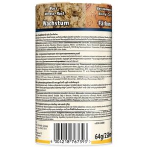 Čtyři druhy vločkových krmiv ve čtyřech nádobkách: žluté vločky podporují zdravý růst rybek, hnědé zvyšují odolnost, zelené přejí vitalitě, červené zlepšují plodnost. Obsahuje stabilní množství vitamínu C.