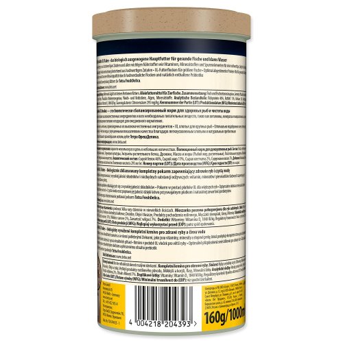 Složení: ryby a vedlejší výrobky z ryb, obiloviny, kvasnice, rostlinné bílkovinné extrakty, měkkýši a korýši, oleje a tuky, mořské řasy, cukr.