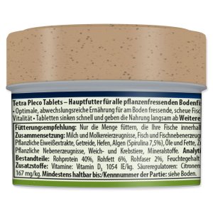Nutričně vyvážené tablety se spirulinou pro býložravé ryby, živící se potravou ze dna-kompletní krmivo.