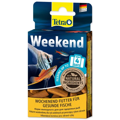 Tetra Weekend tyčinky zajistí vyváženou výživu až na čtyři dny a zároveň pomáhají udržet vodu v akváriu čistou. Ideální řešení pro krátké dovolené, víkendy nebo nečekané cesty.