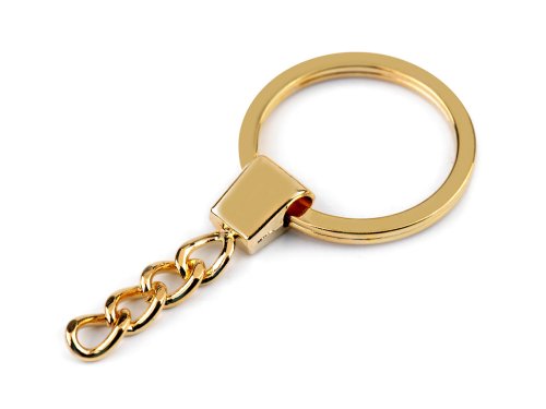 Kroužek na klíče Ø30 mm s řetízkem, plochý - žluté zlato (5 ks)