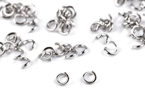 Spojovací kroužky jsou nepostradatelnou součástí ve špercích. Nabízíme vám kvalitní kroužky z nerezové oceli. Používají se na ketlování, spojení dvou částí šperku, na přichycení různých ozdob na řetízky apod. V balení 5 g je cca 150 ks kroužků.