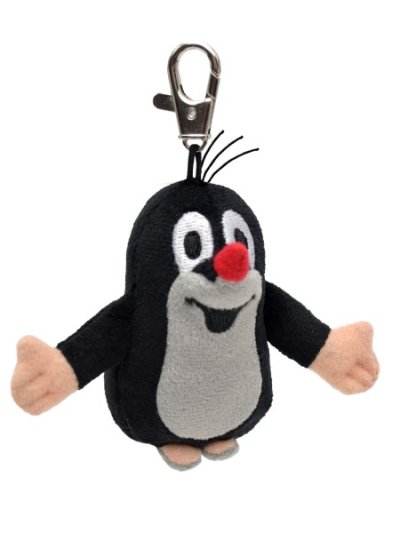 Plyšový krtek s karabinou. Velikost 8 cm.