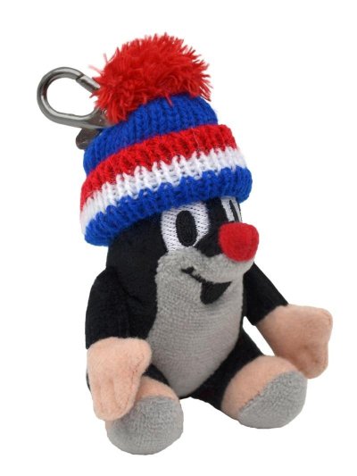Plyšový přívěsek na kovové karabině. Krteček sedící s kulichem v modré trikoloře.Doporučený věk: od 1 roku, CE
