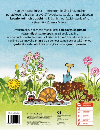 Kdo by neznal krtka – nejroztomilejšího kresleného pohádkového hrdinu na světě? Vydejte se spolu s ním objevovat kouzlo ročních období na krásných obrázcích geniálního výtvarníka Zdeňka Milera! Dvoustránkové scenerie mohou děti dolepovat spoustou roztomilých samolepek, ať už podle zadání, anebo podle vlastní fantazie. V knížce se kromě toho dozvědí mnoho nového a zajímavého o jaru a za pomoci samolepek si také mohou vyzdobit vlastní obrázek, pokojíček nebo vyrobit pexeso!