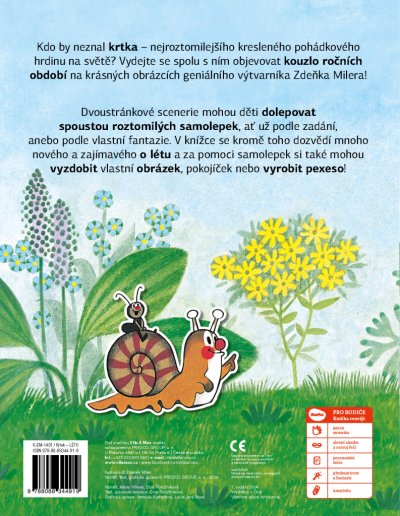 Kdo by neznal krtka – nejroztomilejšího kresleného pohádkového hrdinu na světě? Vydejte se spolu s ním objevovat kouzlo ročních období na krásných obrázcích geniálního výtvarníka Zdeňka Milera! Dvoustránkové scenerie mohou děti dolepovat spoustou roztomilých samolepek, ať už podle zadání, anebo podle vlastní fantazie. V knížce se kromě toho dozvědí mnoho nového a zajímavého o létě a za pomoci samolepek si také mohou vyzdobit vlastní obrázek, pokojíček nebo vyrobit pexeso!