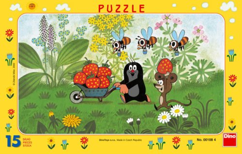 Deskové puzzle s motivem Krtečka na výletě obsahující 15 dílků. Velikost složeného obrázku je 25 x 14,5 cm. Vhodné pro děti od 3 let.