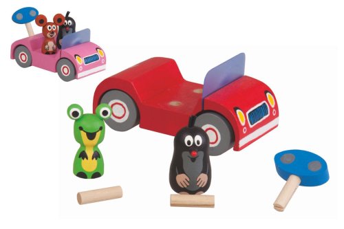 Krteček s kamarádkou Žabkou se vydali na výlet v červeném autíčku. Figurky i klíček lze libovolně vyndávat a prohazovat. Velikost: 5 x 5 x 11 cm, v krabičce. Vhodné od 3 let.