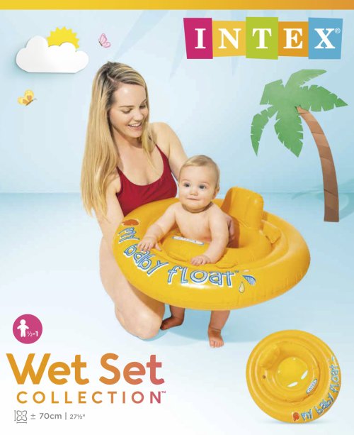 Intex My Baby Float je plovací kruh pro malé děti, které se seznamují s vodním prostředím. Je určen pro děti ve věku 6 – 12 měsíců s maximální nosností 11 kg. Vašemu dítěti poskytne maximální ochranu a komfort díky nafukovací opěrce zad a měkkým okrajům otvorů na nohy. Materiál 0,3mm vinyl. Rozměr cca 70 cm. Vhodné pro děti od 6 do 12 měsíců.
