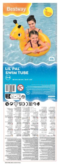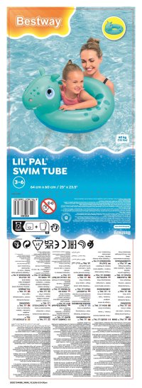 Nafukovací kruhy jsou dodávány v jednoduchém balení s potiskem značky Bestway a jasně uvedenými rozměry a doporučeným věkem. Na zadní straně obalu jsou rovněž uvedeny bezpečnostní upozornění a pokyny k použití v několika jazycích. Celkově je tento produkt vhodný pro rodiny, které hledají kvalitní a zábavný pomocník při nauce plavání a pobytu ve vodě pro malé děti.