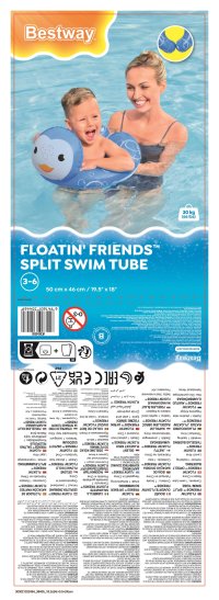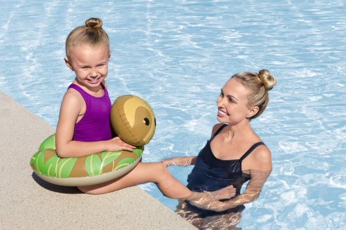 Nafukovací kruh na plavání Bestway je navržen tak, aby dětem přinesl radost a bezpečí při vodních hrách. Kruh je dostupný ve třech veselých designových variantách – želva, tučňák a lenochod, přičemž každý motiv vyniká svým hravým vzhledem a pestrými barvami, které upoutají dětskou pozornost. Zvířecí hlavička je umístěná na horní části kruhu, což zvyšuje atraktivitu a zároveň slouží jako opěrka při plavání.