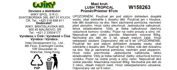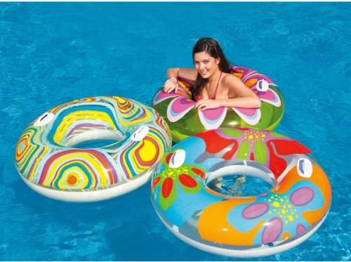Nafukovací maxi kruh na plavání pro děti na vodu, se dvěma madly, v zářivém motivu. Nafukovací kruh pneumatika je plavecká pomůcka pro plavání a vodní hrátky. Tloušťka materiálu 0,25 mm, průměr kruhu 97 cm. Maximální zatížení je 80 kg. Rozměry balení 18 x 17 x 6 cm. Vhodné pro děti od 9 let.