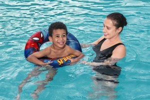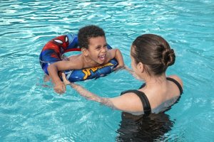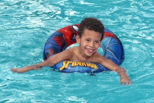 Nafukovací kruh v designu Spiderman pro děti od 3 do 6 let o průměru 56 cm.