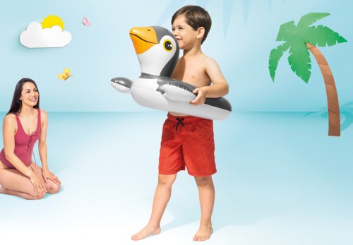 Nafukovací kruh na plavání pro děti na vodu v podobě kačenky, tučňáka nebo plameňáka. Vyrobeno z kvalitního vinylu (0,20mm). Velikost cca 66 x 55 cm. Rozměry balení 16 x 30 x 3 cm. Vhodné pro děti od 3 do 6 let.
