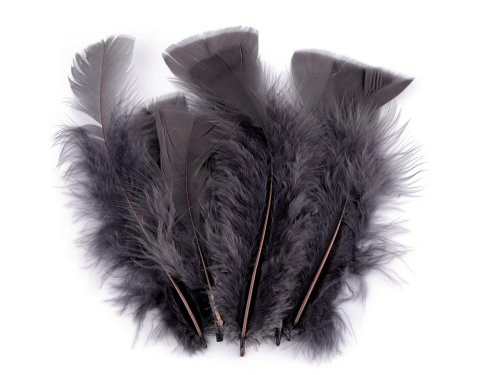 [Ozdobné krůtí peří má jedinečný vzhled.] V dolní polovině se skládá z jemného chmýří a horní polovinu tvoří plochá část pírka, která má rovný tvar. Peří působí velmi luxusně. Jeden sáček obsahuje 20 kusů peří. Použití: Peří můžete použít na výrobu fascinátorů, karnevalových kostýmů nebo ho naaranžovat do vázaných kytic, ikeban a dalších dekorací.