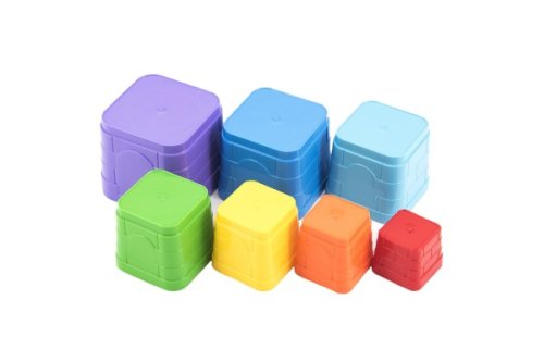 Kubus obsahuje sedm hranatých dílů různých barev, které do sebe zapadají. Skládanku si děti mohou vzít i na písek nebo do vody. Vhodné od 12 měsíců.
