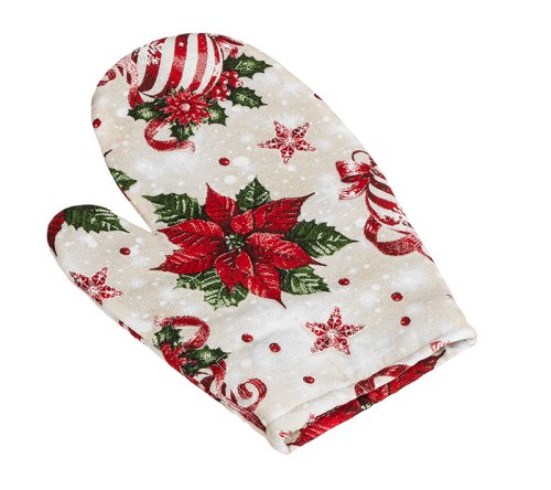 Kuchyňská chňapka VÁNOČNÍ vrchní materiál 50% Bavlna, 50% Polyester 180g/m2 výplň netkaná textilie vnitřní látka 100% Bavlna praní na 30°C mírný postup sušit v sušičce nedoporučujeme žehlit do 110°C …