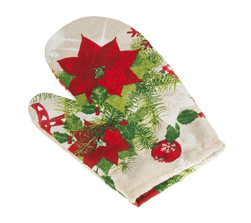 Kuchyňská chňapka VÁNOČNÍ vrchní materiál 55% Bavlna, 45% Polyester 180g/m2 výplň netkaná textilie vnitřní látka 100% Bavlna praní na 30°C mírný postup sušit v sušičce nedoporučujeme žehlit do 110°C …