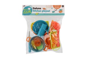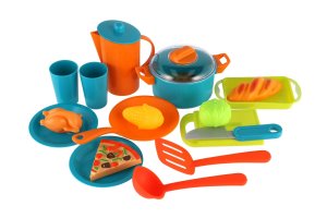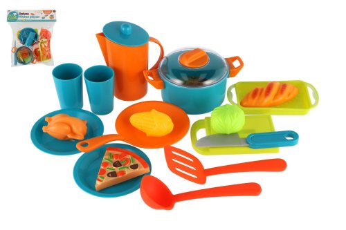 Vaření jako u maminky! Tato barevná plastová kuchyňská sada obsahuje vše potřebné pro malou kuchařku nebo kuchaře – hrnce, pánvičky, pokličky i příbory. Ideální pro hru na vaření, rozvoj fantazie a nápodobu reálného světa. Rozměr balení: cca 28 × 28 cm Vhodné pro děti od 3 let