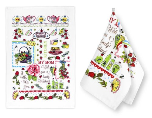 Kuchyňská utěrka - 1 KS materiál 100% Bavlna 350g/m2 praní na 40°C sušit v sušičce při nižší teplotě žehlit do 150°C poutko na zavěšení Velice dobře absorbují vodu.