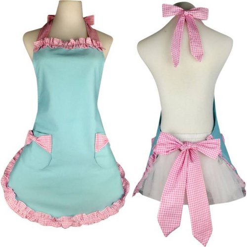 Kuchyňská zástěra v pastelových barvách.