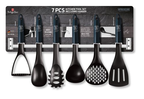 Kuchyňské náčiní s nástěnným držákem 7 ks Aquamarine Metallic Line BH-6326