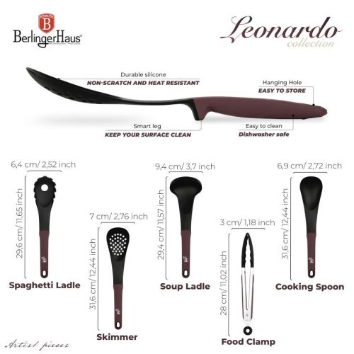 Styl, pohodlí a funkčnost v jednom – tato 5dílná sada kuchyňského nářadí v elegantní matné bordó barvě vám usnadní každodenní vaření a zároveň dodá vaší kuchyni moderní vzhled. Ideální volba pro ty, kdo hledají spolehlivé a šetrné nástroje pro všechny typy nádobí, včetně nepřilnavých povrchů.
