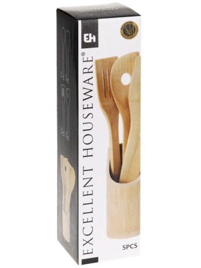 Kuchyňské náčiní ve stojanu sada 5 ks bambus KO-784610060