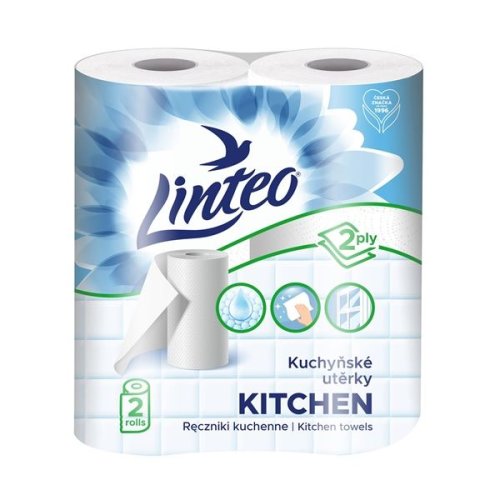 Jemné bílé kuchyňské utěrky Linteo Papír je vyroben ze 100% celulózy a je ozdoben zeleným prolisem Nabízí vám příjemný poměr cena-kvalita U těchto kuchyňských utěrek je na jedné roli návin 10 metrů Balení …