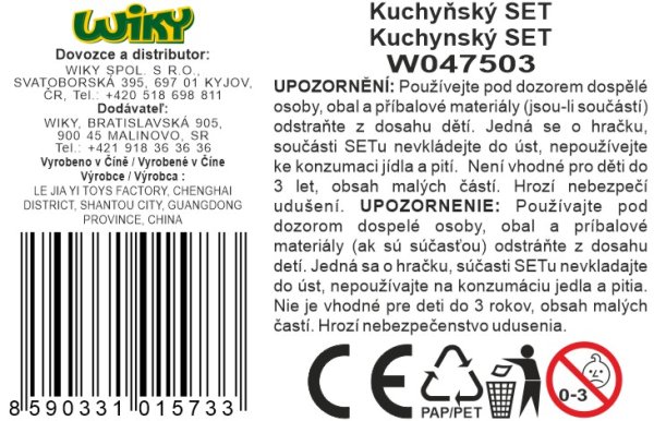 Kuchyňský set. Rozměry 27,5x25,5x7,5 cm. Součástí odkapávač, nádobí, sporák, zelenina (ovoce).