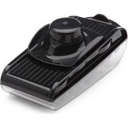 Univerzální kuchyňský kráječ s výměnnými břity a praktickou plastovou nádobou pro krájenou pochutinu.