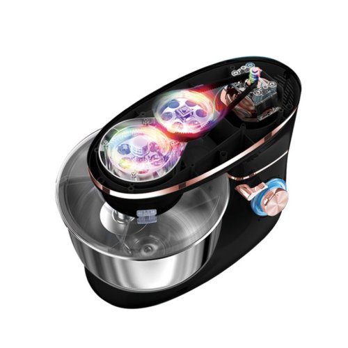 Materiál: nerezová ocel, plast - Nerezová mísa 18/10 6 l - Hák na těsto s nepřilnavým povrchem a šlehač - Šlehací metla - 1300 W, 220-240 V, 50/60 Hz - Barva: matná černo-růžově zlatá - 6 rychlostí s funkcí turbo puls - Snadno se čistí - Funkce snadného otevírání/zavírání - Nerezová mísa - Kontrolka LED jako indikátor výkonu - Tichý design - Elegantní design