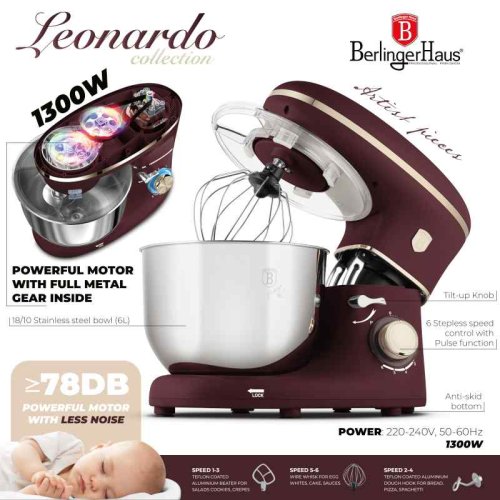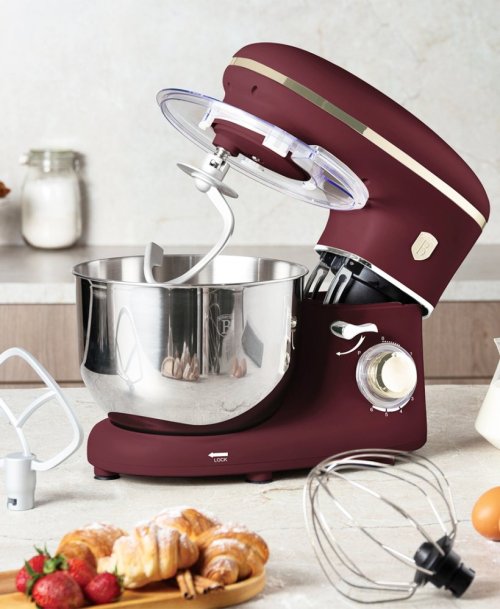Tento kuchyňský robot v moderní matné bordó barvě je ideálním pomocníkem pro každého, kdo rád peče a vaří s lehkostí. Díky silnému motoru, velké nerezové míse a několika nástavcům zvládne hnětení těsta, šlehání i míchání bez námahy. Stylový a tichý design se skvěle hodí do každé kuchyně.