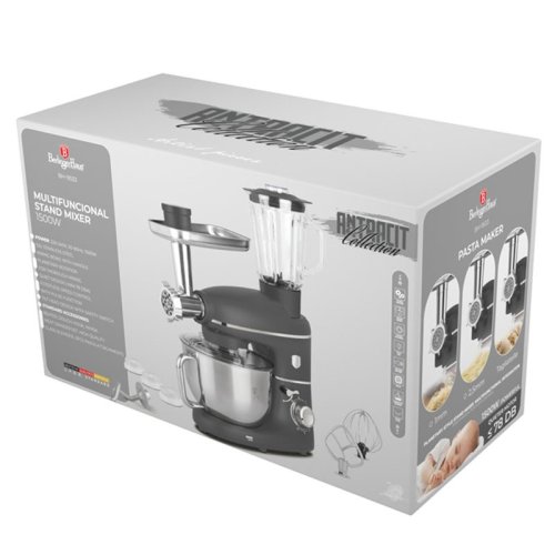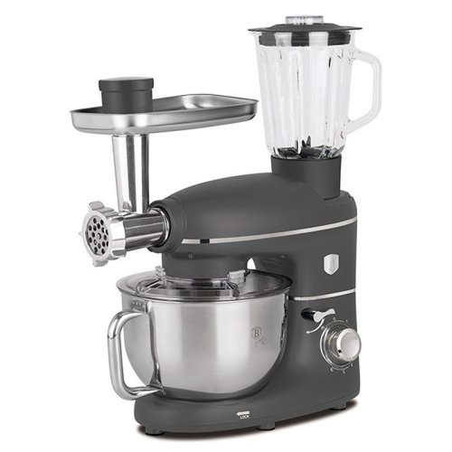 Nejnovější modely kuchyňských robotů BerlingerHaus jsou extrémně výkonné, kompaktní stroje s jednoduchou obsluhou a navíc dokonalým designem. <BR>Ve své třídě vynikají opravdu silným elektromotorem s bezkonkurenčním výkonem 1500 W. Celonerezová mísa s nezvykle bohatým objemem až 5,5 litrů Vám umožní hravě zpracovat ještě více surovin než kdy předtím. <BR>Přitom si však robot zachoval svoje kompaktní rozměry, ladnou ergonomickou konstrukci a skvěle se s ním na kuchyňské lince manipuluje. <BR>Osvědčená funkce planetárního míchání je již nezbytnou součástí všech kvalitnějších, moderních robotů. <BR>Tzn. že všechny nástavce se v míse pohybují kolem své osy a navíc kolem osy převodovky, díky tomu zpracují kompletně celý obsah mísy i v okrajích a všechny suroviny jsou tak dokonale promíchané. <BR>Díky libovolnému přepínání až 6ti rychlostí s pulsní funkcí je tento kuchyňský pomocník přizpůsoben k rychlému šlehání smetany i jemnému hnětení velkého množství těžkého chlebového těsta. <BR>Celkově je ovládání velmi jednoduché, výměna nástavců nebo vyjmutí či zajištění mísy jsou otázkou pár sekund. <BR>Hnětací mísa je vyrobena z kvalitní nerezové oceli, proto se nemusíte bát jejího mytí v myčce. <BR>V neposlední řadě jsou nové roboty od značky BerlingerHaus dokonalými designovými kousky v jedinečných metalických barvách, s ladnými křivkami a promyšlenou konstrukcí. <BR><BR>Tento multifunkční robot je jedinečný svojí výbavou, kromě klasické přípravy těst nebo krémů má i další příslušenství. <BR>Součástí je mixér o objemu 1,5 litru, ve kterém lze připravovat zmrzlinové koktejly, smoothie, polévky nebo omáčky. <BR>Pro milovníky masa je tento všestranný pomocník vybavený mlýnkem na maso, díky kterému připravíte domácí mleté maso, vepřové na sekanou, nebo zdravou variantu krůtího burgeru. <BR>To vše v jednom přístroji. Příslušenství lze libovolně odejmout, abyste si usnadnili práci s ostatními komponenty. <BR><BR><BR>- výkon: 1500 W <BR>- 6 rychlostních stupňů s pulsním spínačem <BR>- hnětací nerezová mísa s objemem 5,5 l <BR>- průhledný kryt hnětací mísy usnadňuje kontrolu obsahu <BR>- planetární míchání pro zpracování 100% obsahu mísy <BR>- stabilní protiskluzové nohy <BR>- sklápěcí rameno <BR>- bezpečnostní pojistka nástavců <BR>- bajonetový systém uchycení nástavců umožní rychlé a jednoduché sestavení <BR>- součástí jsou 3 různé nástavce (hnětení, šlehání, míchání), mlýnek na maso a mixér <BR>- jednoduchá obsluha a čištění, mísa navíc může do myčky nádobí <BR>- matný povrch <BR>- barva antracitová šedá <BR>- kolekce: Anthracite Collection <BR>
