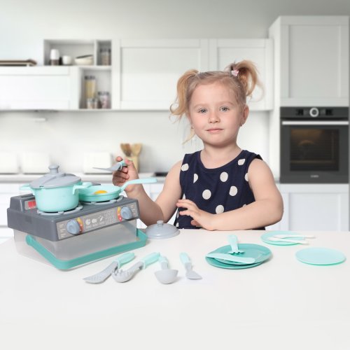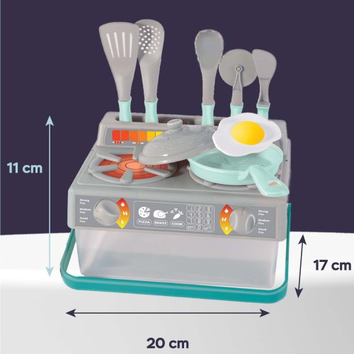 Báječná přenosná kuchyňská sada obsahuje vařič, hrnec, příbory a spoustu jiných věcí potřebných v kuchyni. To vše navíc v paktickém parádním boxu! Vše vyrobeno z kvalitníh plastu.